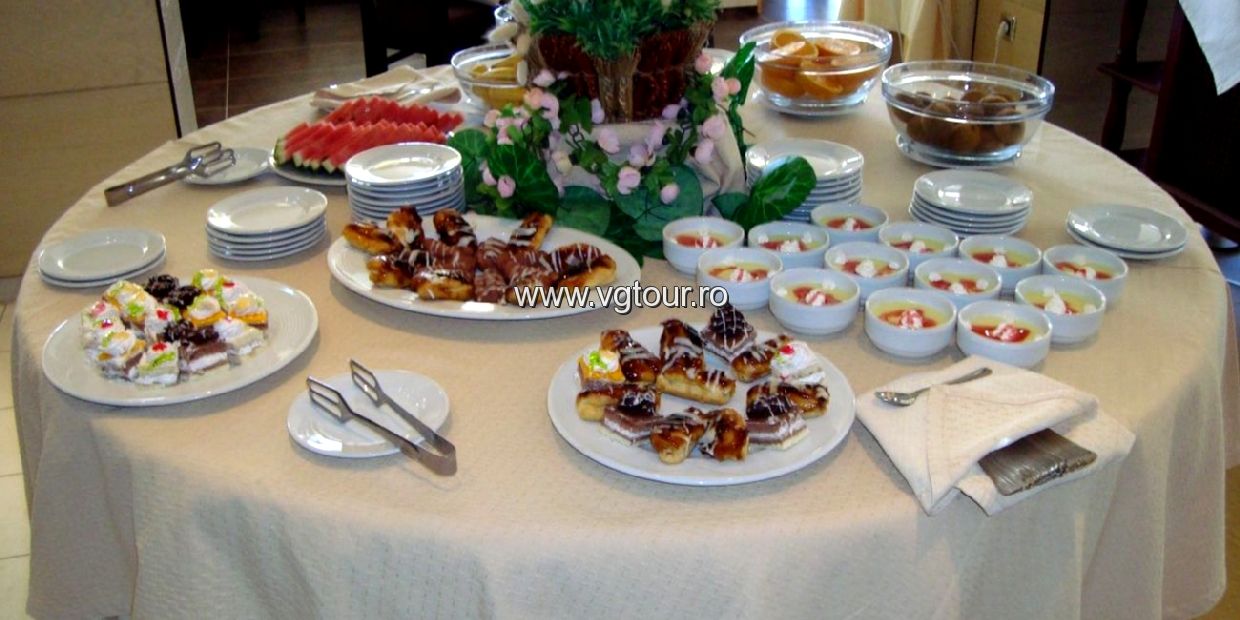 Cazare, regim de masa: all inclusive - bufet suedez. Concept All Inclusive: piscina exterioara, sezlonguri pe plaja (inclus- in functie de disponibilitate ), mesele tip bufet: mic dejun 07:30-10:00, pranzul 12:30-14:30, cina 18:30-21:00 - in restaurantul principal. Gustari: sandwichuri si dulciuri la barul de la piscina, lobby bar intre orele 10:30 si 11:30 si intre orele 15:30 si 17:00, inghetata in restaurantul principal in timpul meselor. Bauturi alcoolice si non alcoolice locale , disponibile in lobby si barurile de la piscina, cafea si ceai intre orele 09:00-23:00. Activitati sportive si de divertisment: tenis de masa, darts, teren de joaca multifunctional, water ball, animatie sportiva (adulti si copii), fitness. Acces gratuit WiFi in loby si camera. |