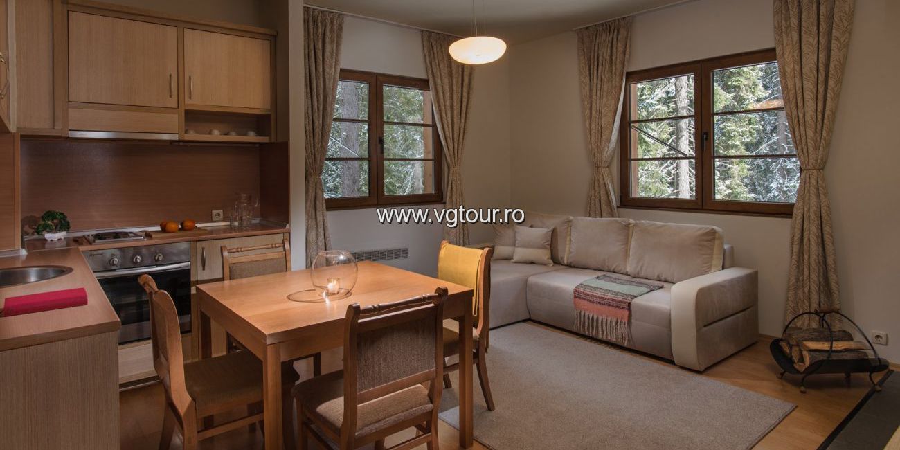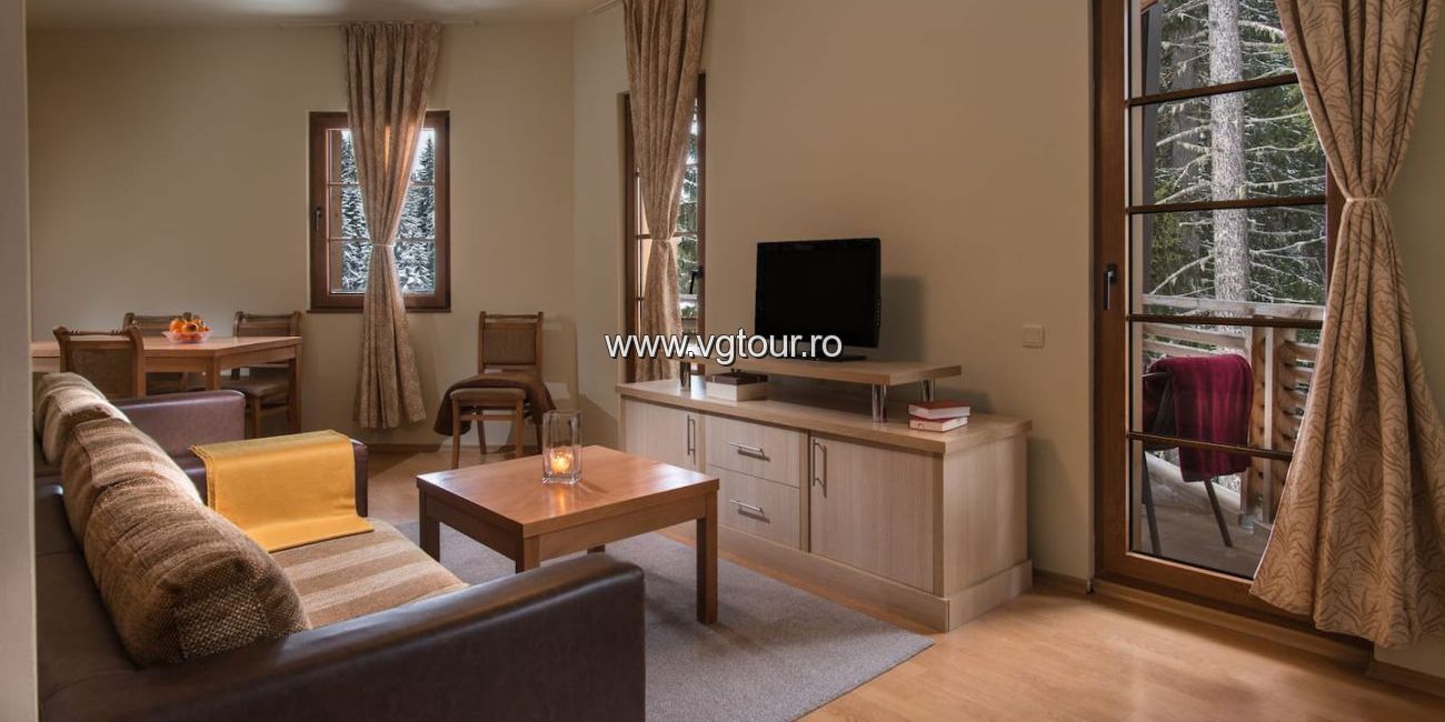 Hotel MALINA RESIDENCE are 15 apartamente de lux dintre care 7 apartamente cu un dormitor si 8 apartamente cu doua dormitoare intr-o locatie cu vedere la munte. Apartament cu un dormitor (50 - 70 mp): sunt compuse dintr-un living, care are o masa cu patru scaune, canapea cu canapea extensibila, masuta de cafea, semineu cu lemne (contra cost) si chicineta. Chicineta este dotata cu un cuptor electric si doua plite, hota, frigider mic, ceainic electric, aparat de cafea, prajitor de paine, chiuveta, tacamuri si vesela. Dormitor mobilat cu dulap mare, noptiere, 1 pat dublu sau 2 paturi de o persoana, mocheta. Dormitoarele si camera de zi sunt separate prin usi. Doua dintre ele au terasa. Baie cu dus. Sunt disponibile Wi-Fi gratuit si TV prin satelit. Apartament cu doua dormitoare (95 - 120 mp): sunt compuse dintr-un living, care are o masa cu patru scaune, canapea cu canapea extensibila, masuta de cafea, semineu cu lemne (contra cost) si chicineta. Chicineta este dotata cu un cuptor electric si doua plite, hota, frigider mic, ceainic electric, aparat de cafea, prajitor de paine, chiuveta, tacamuri si vesela. 2 dormitoare, mobilate cu un dulap mare, noptiere, pat dublu sau 2 paturi de o persoana in fiecare, mocheta. Dormitorul si camera de zi sunt separate printr-o usa. Patru apartamente (maisonette) au doua bai cu dus. Celelalte 4 apartamente au 1 baie cu dus si chiuveta si o toaleta separata cu chiuveta. Doua dintre ele au terasa. Sunt disponibile Wi-Fi gratuit si TV prin satelit. Utilizarea șemineului în apartamente este posibilă contra unei taxe suplimentare (20 BGN per coș de lemne).